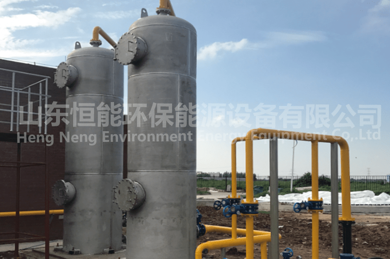 沼气中含有大量的粉尘、污泥、水分、杂质及毒害性气体(如HCl,H2S,NH3),为达到设备利用要求或环保排放标准,需要对原料气中的气体进行预处理,如增压、脱硫、脱水、除尘等。
